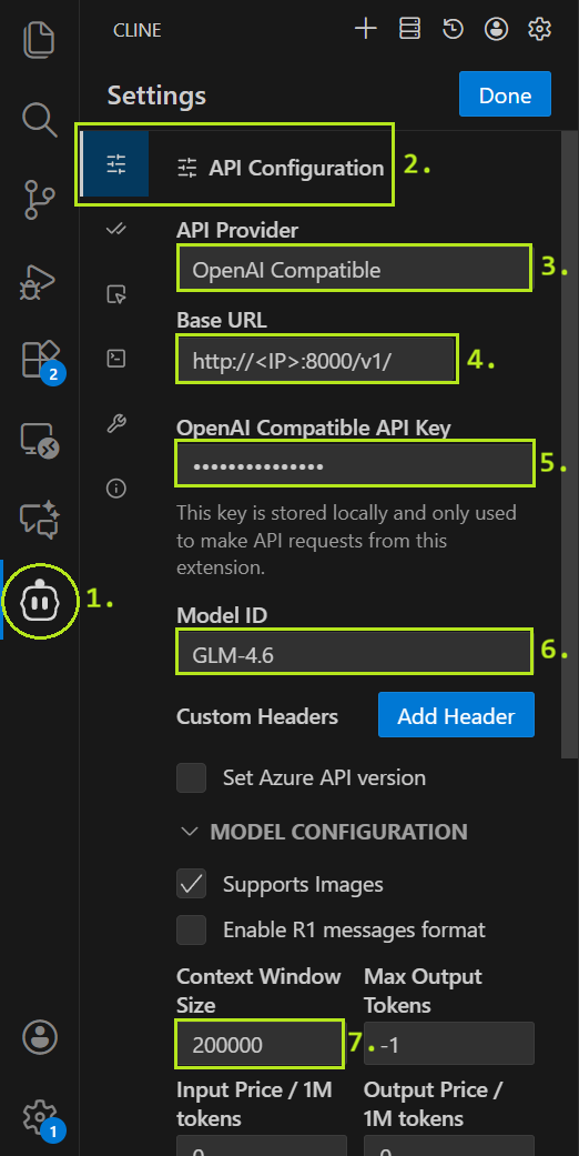 Now we’ll configure Cline to connect to our GLM-4.6 model and set up the MCP Profile Server integration. We’ll use Cline through its VS Code extension, which provides an intuitive graphical interface for interacting with the agent while it profiles and optimizes our HPC workloads.