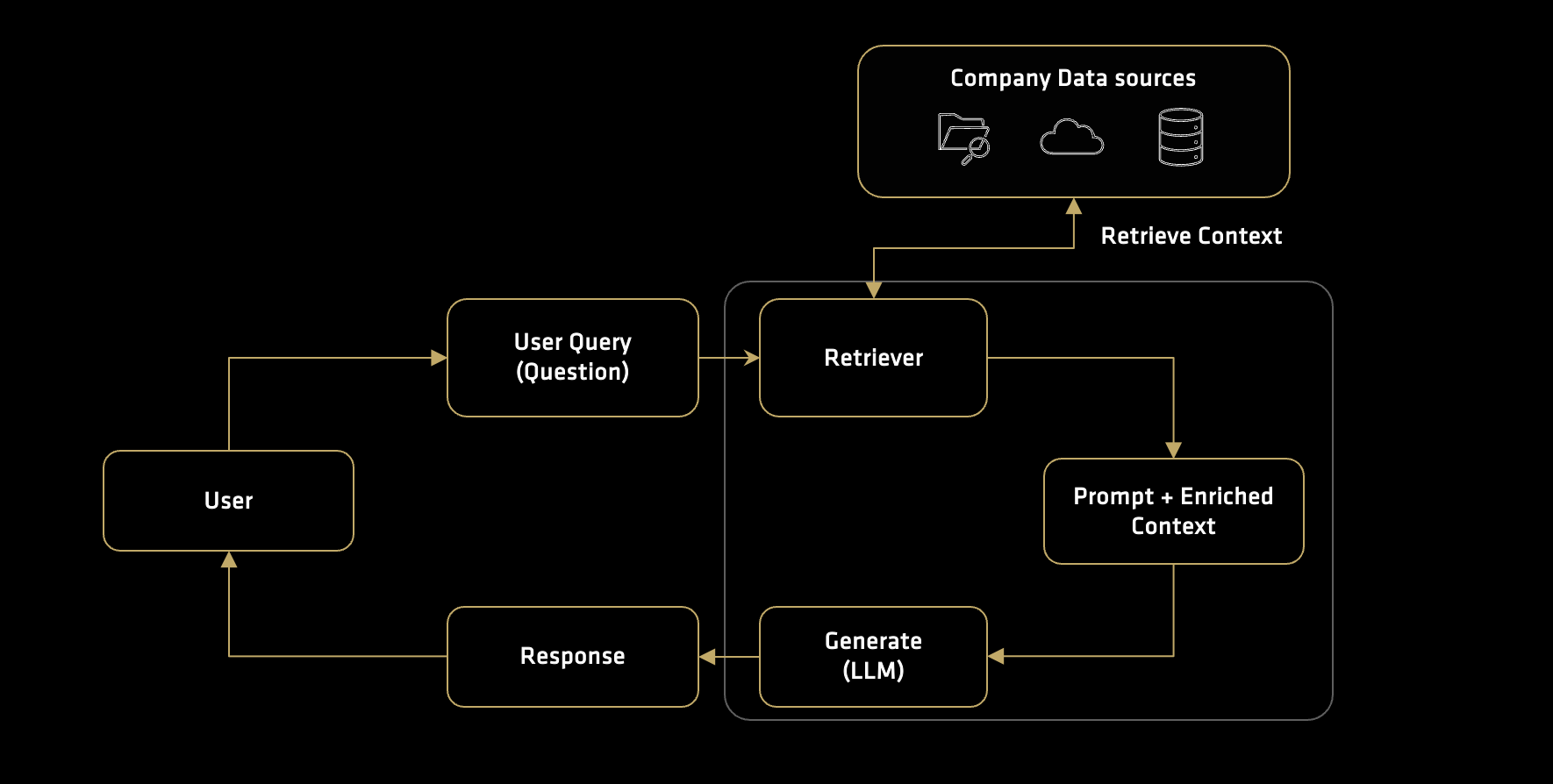 Generate - The model uses the augmented prompt to produce a context-aware answer