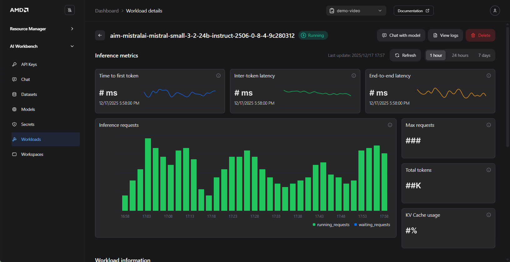 Using a Workspace is just one convenient method for API interaction. You do NOT need to use a Workspace to connect to the model. You can connect to a deployed model’s endpoint both internally (AMD Enterprise AI Suite) and externally, including your local machine. Instructions for generating the necessary credentials and connection details for both internal and external access will be provided shortly.