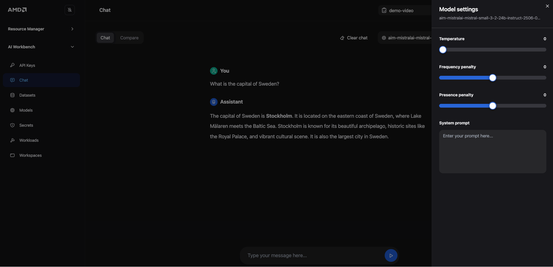 Figure 5: Chat with the model directly in the Workbench interface.