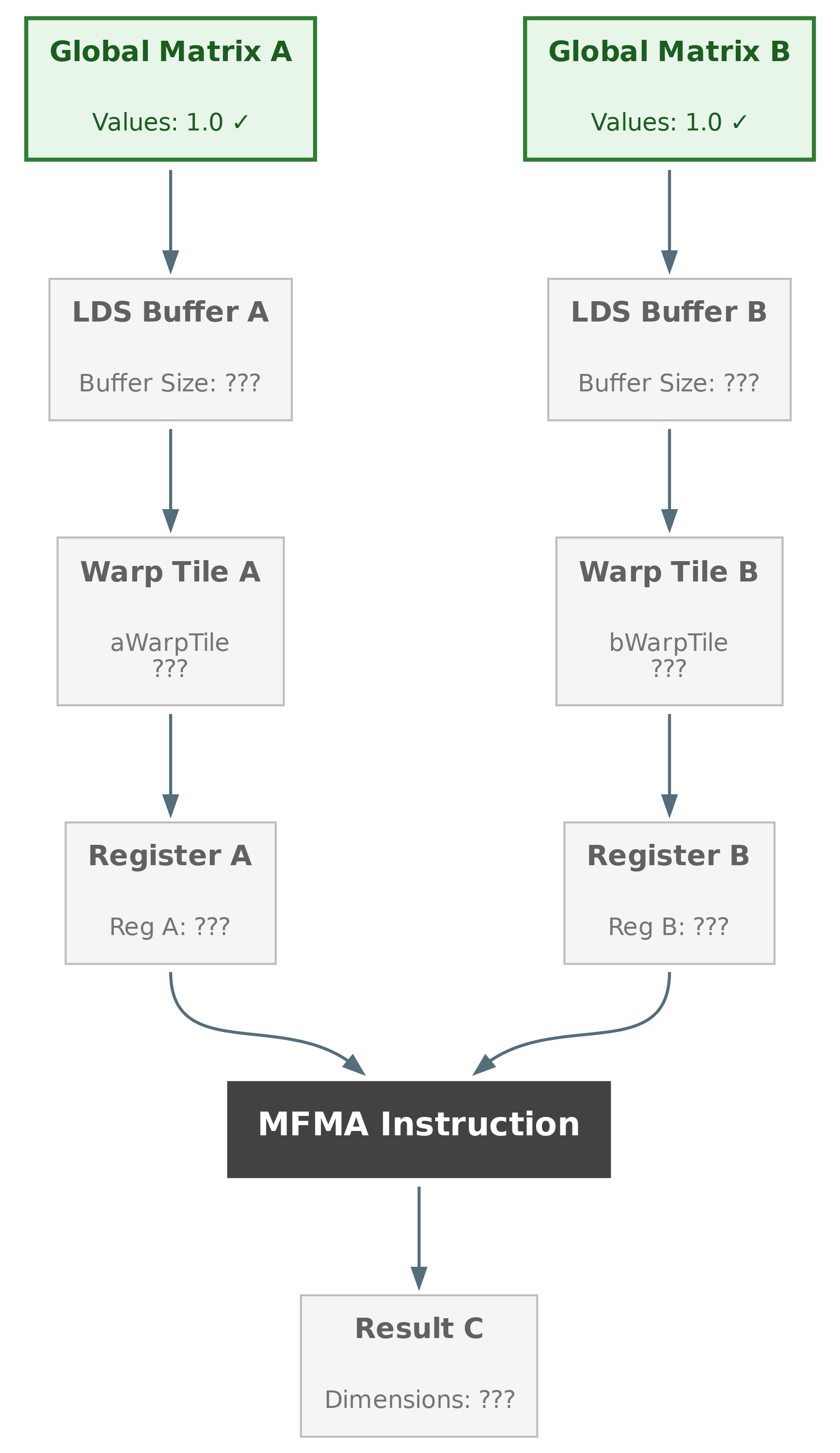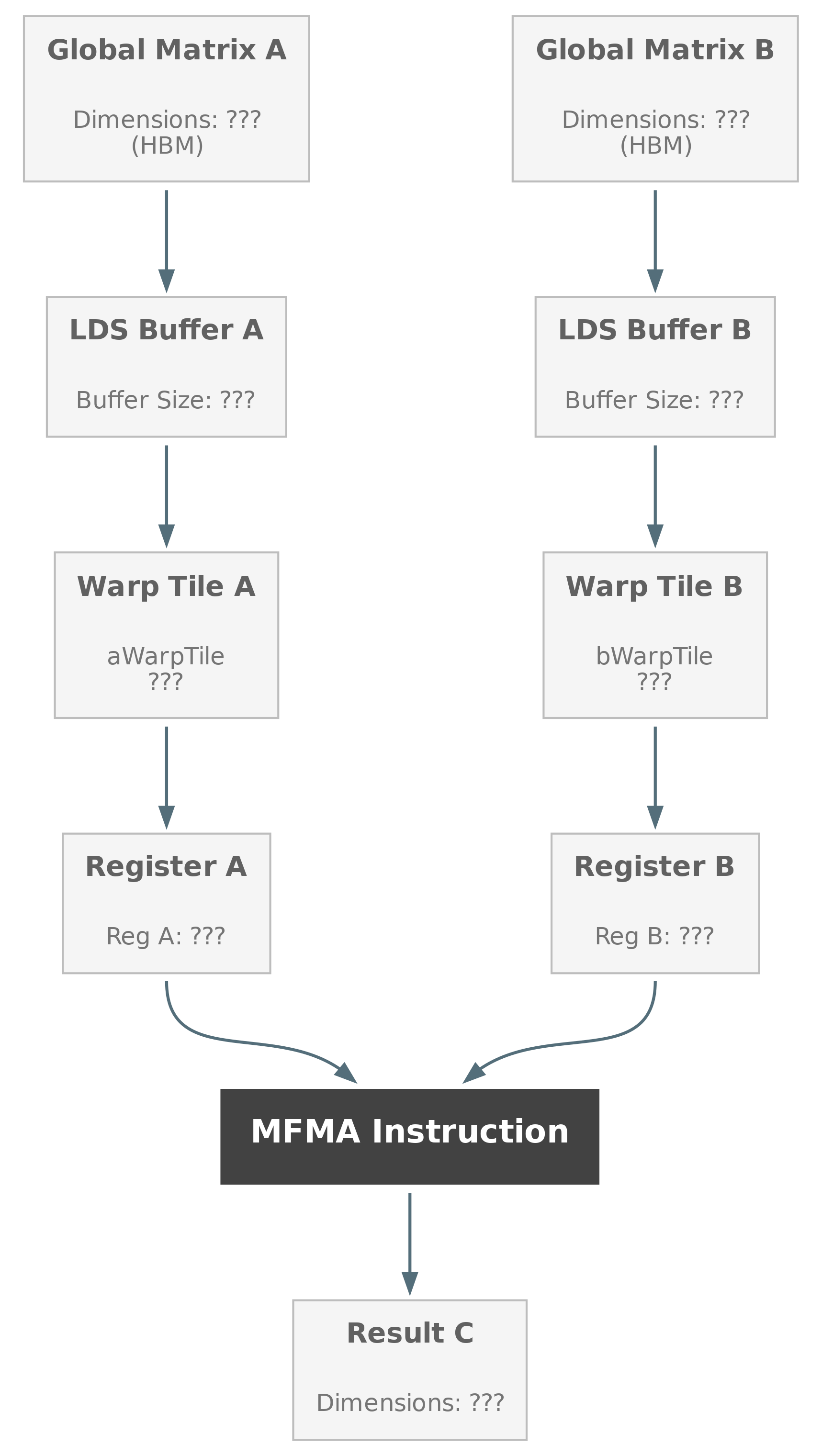 Warp Registers: Data is sliced into warp-level vectors for MFMA instructions