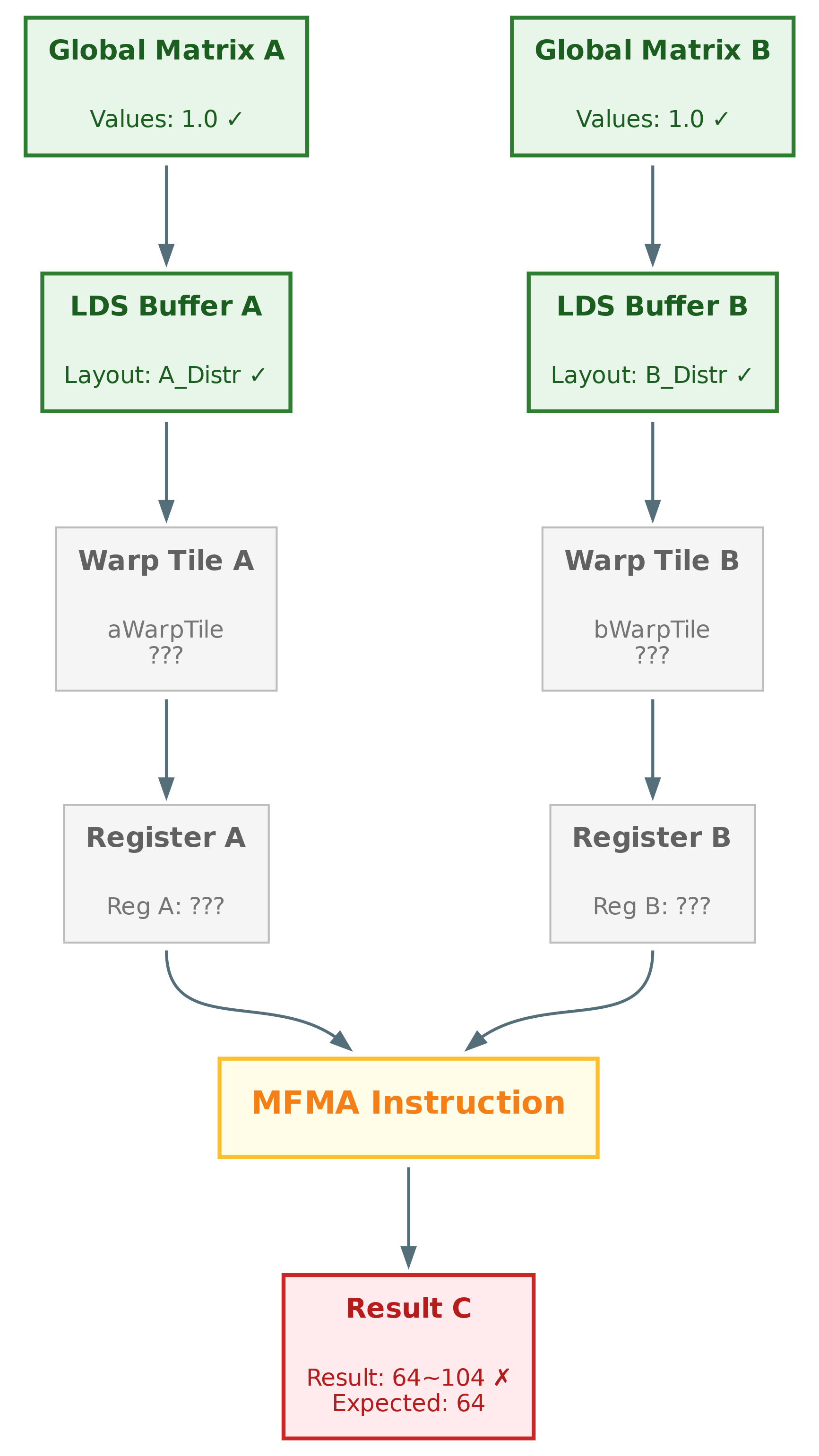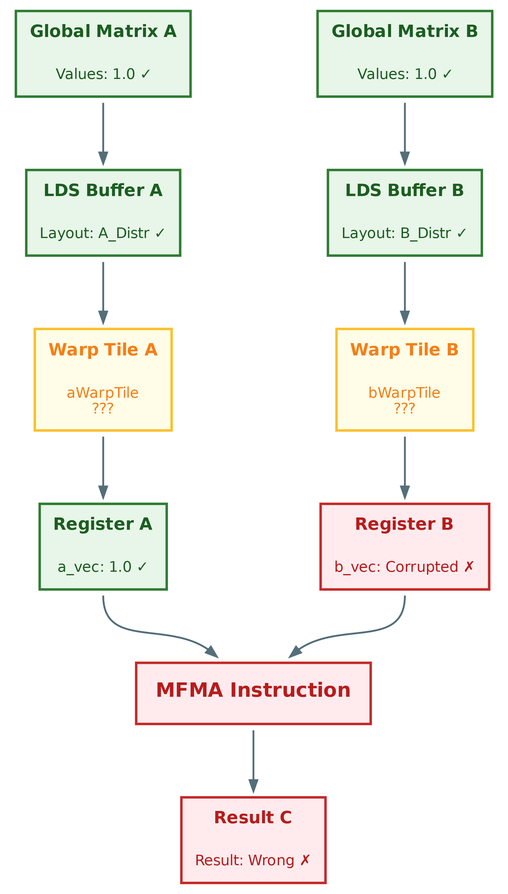 Wrong output → Wrong GEMM result → Corrupted MFMA inputs → Wrong tensor distribution